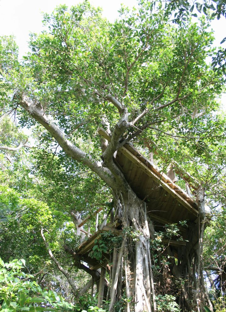 がじゅまるの木の上にツリーハウスが見えてきます。