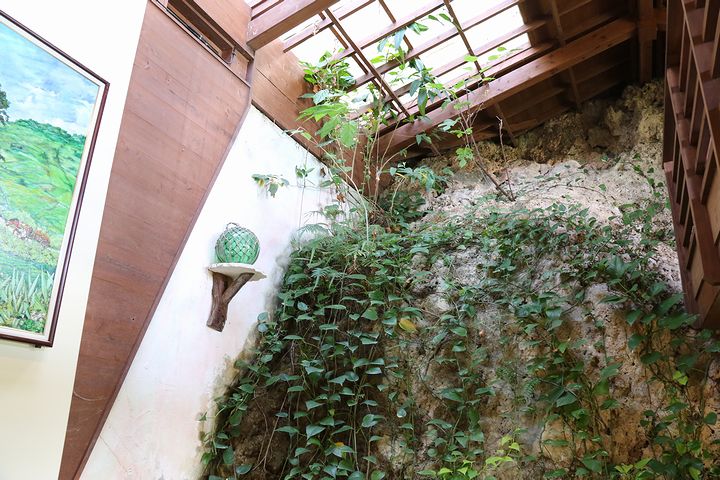 ダイナミックな沖縄ならではの自然を感じてもらおう。そう思って、元々あった石灰岩をそのまま壁にしたといいます。