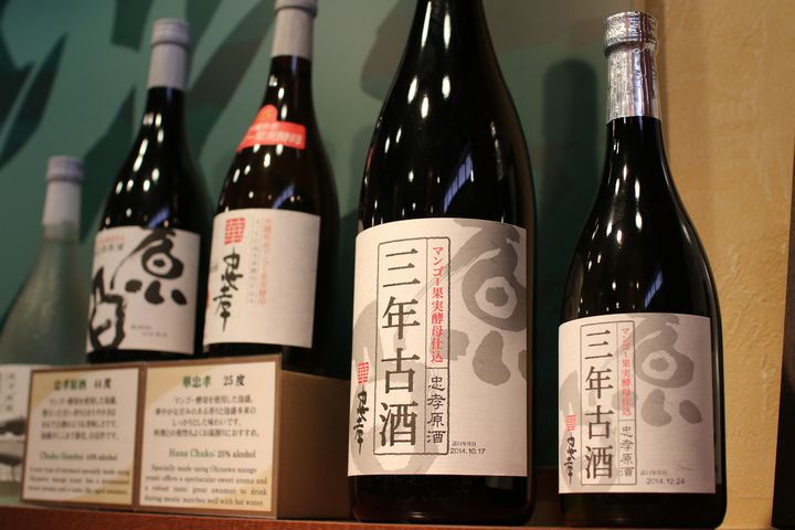 酒びんの陳列をくぐり抜けて向かうはマンゴー酵母仕込みの泡盛だ。