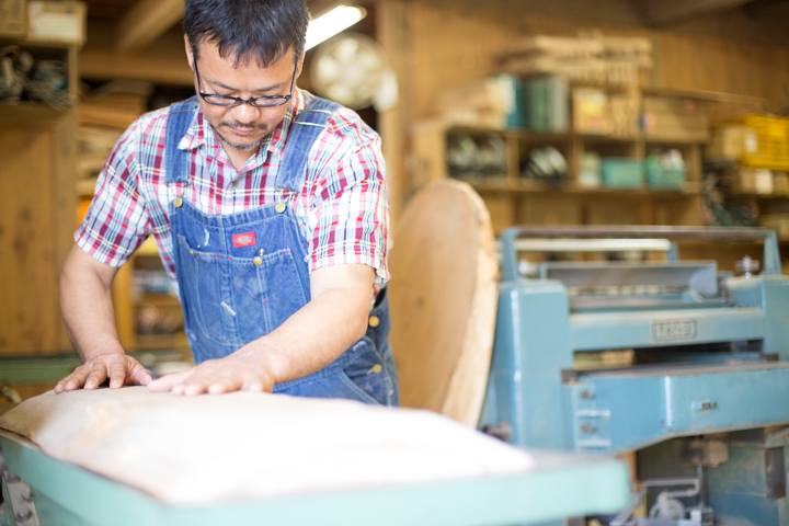 自然が生み出した芸術を自然なまま家具に変えるのがまっくる屋工房の技術。