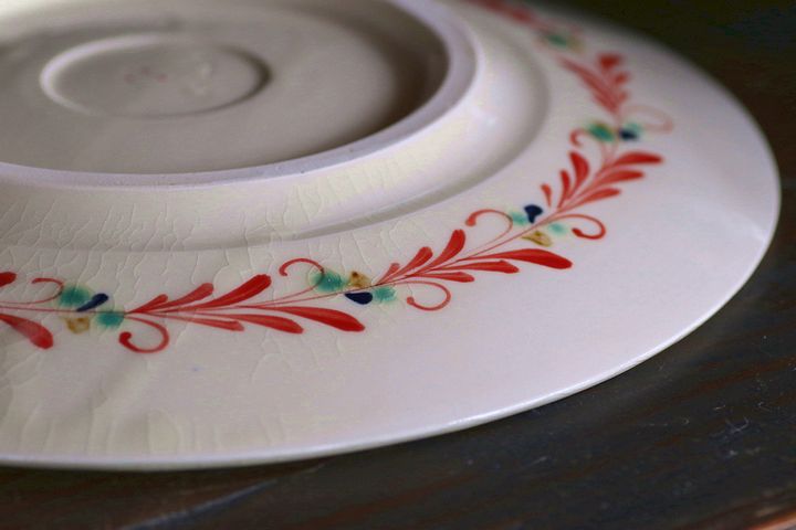こちらは裏側にも絵付けがほどこされた別の一枚。洗ったり拭いたりして裏返したときにも楽しめるように描かれたもので、食後の後片づけでも心躍る器です。