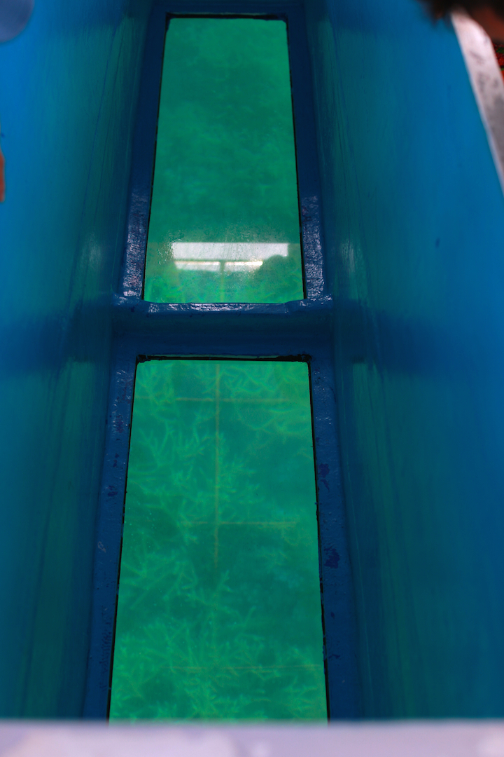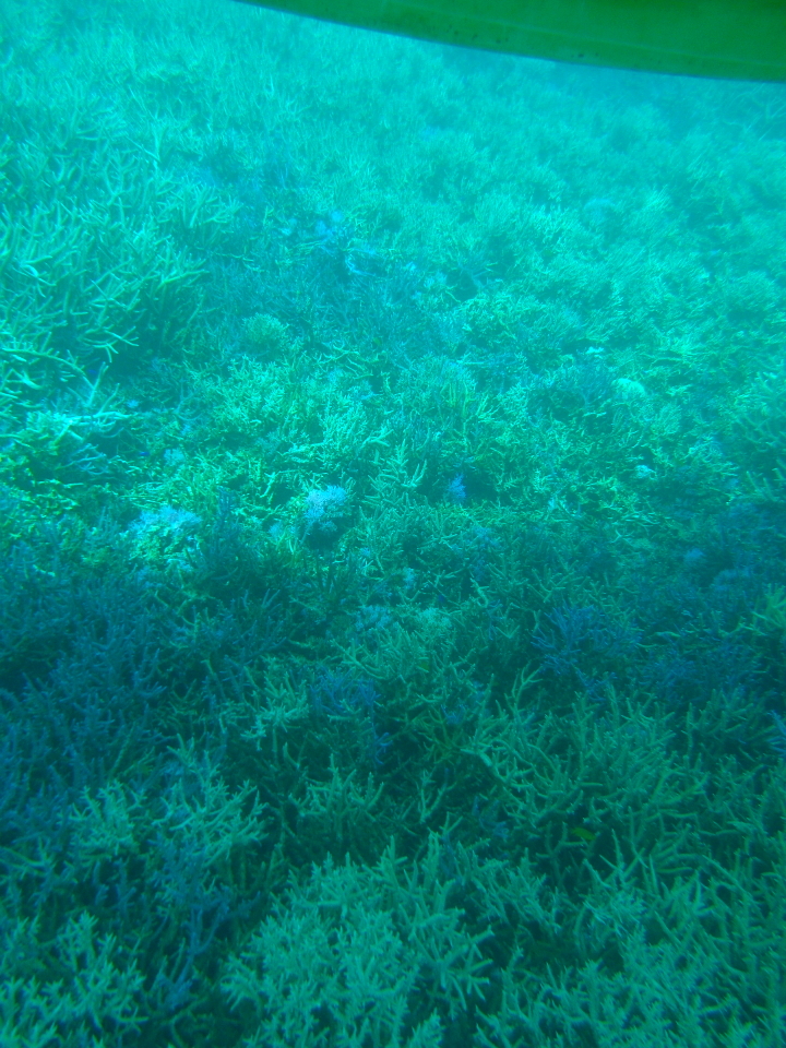 水面からすぐの浅場に広がるポイントのため、船底のガラス越しにはもちろん、