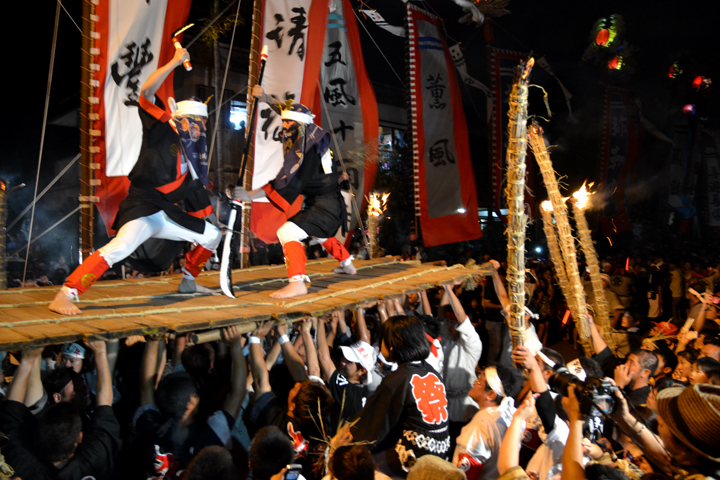 暗くなると、響く指笛とゆらめく松明の炎が、わくわく感と緊迫感とが入り混じる祭りのムードをさらに盛り上げます。