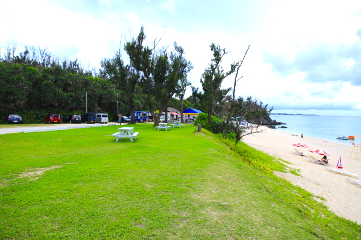 駐車場はビーチ目の前にあり、数歩歩けばすぐ海という利便性も◎。