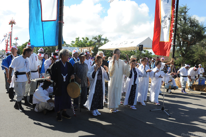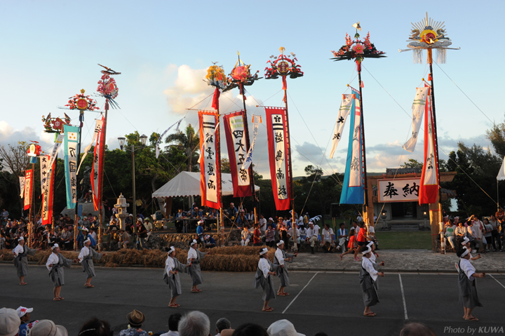 旗頭・イリク太鼓・弥勒(みるく)行列・オーセ(雨世節奉納)が奉納されました。