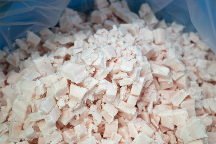 1回の作業工程で25キロの背脂を使用します。
