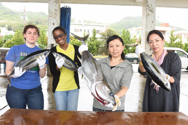 朝市のあとは、この日は『海人料理体験』が開催され、魚のさばきかたや料理を教えてもらえるとのことで、遠くからは沖縄本島中部のうるま市からも参加がありました。