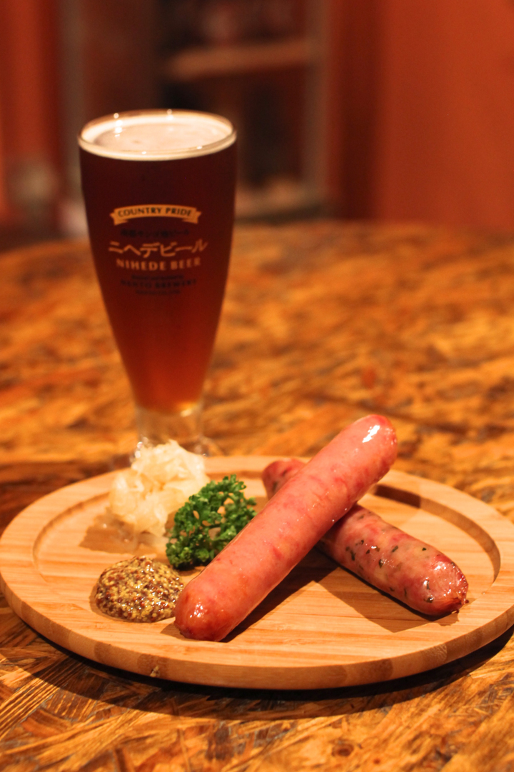 「このビールはソーセージや肉などの焼料理ととても相性がいいんです」すすめられるままにソーセージを頂いてみると、ビールの香ばしさとソーセージの香ばしさがそれぞれ高めあいたまらなく美味しくなった。