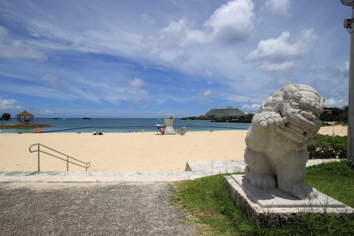 「恩納海浜公園 ナビービーチ」は、穏やかな水面ときめ細かい白砂が自慢です。