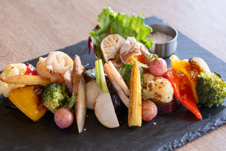 そしていよいよ「ジョスパー」を用いたチャコールグリル料理。まずは「いろいろ野菜の盛り合わせ」をオーダー。